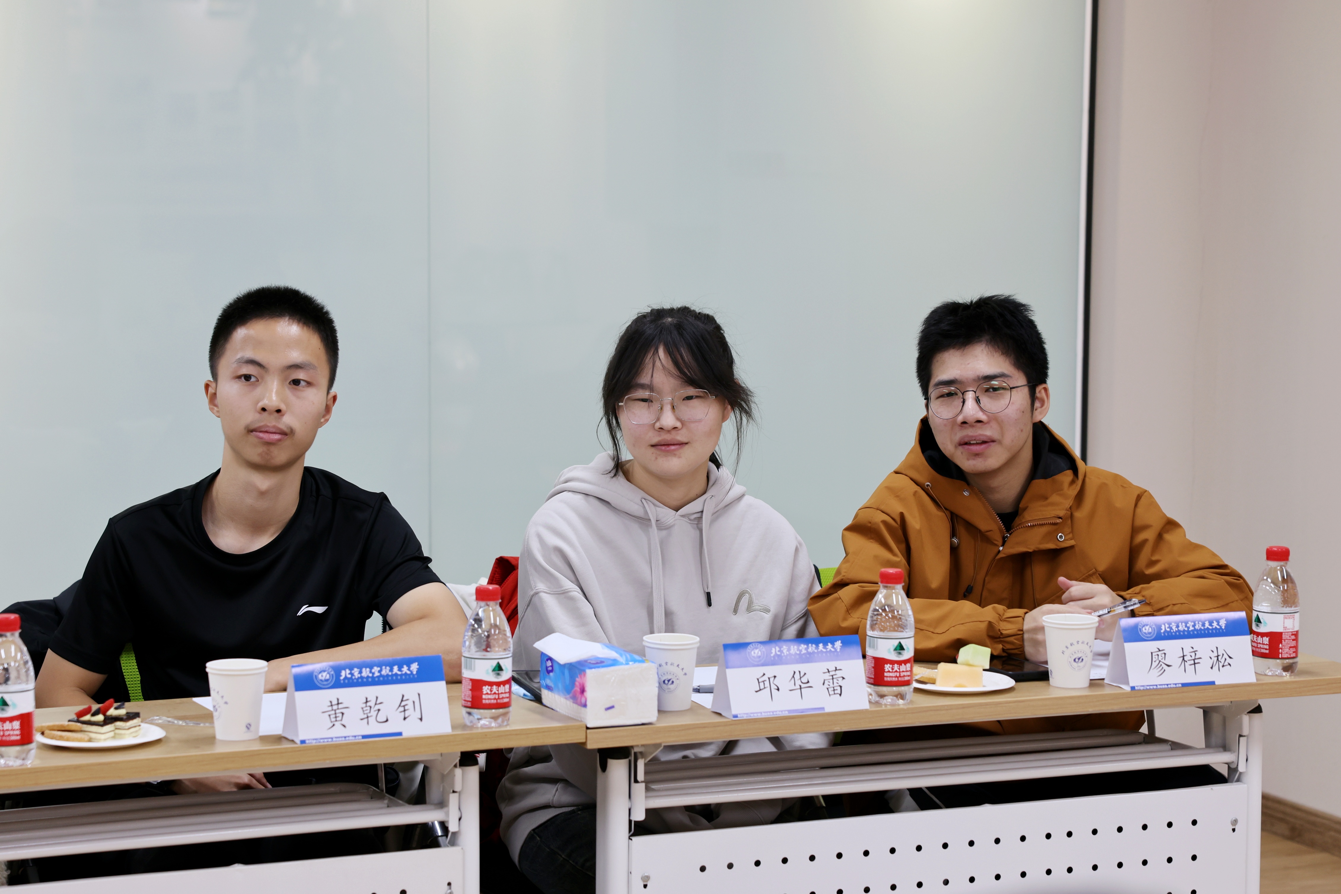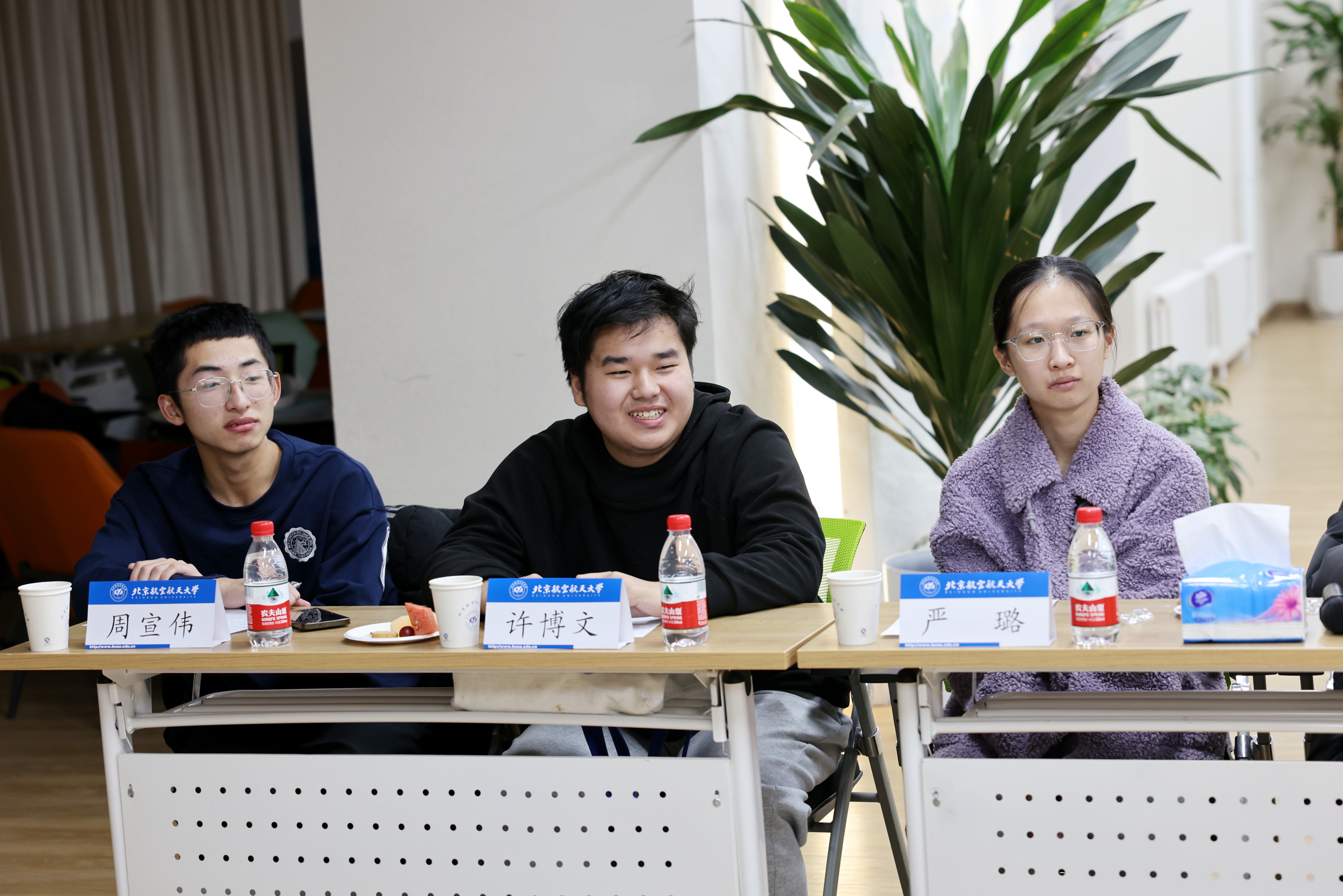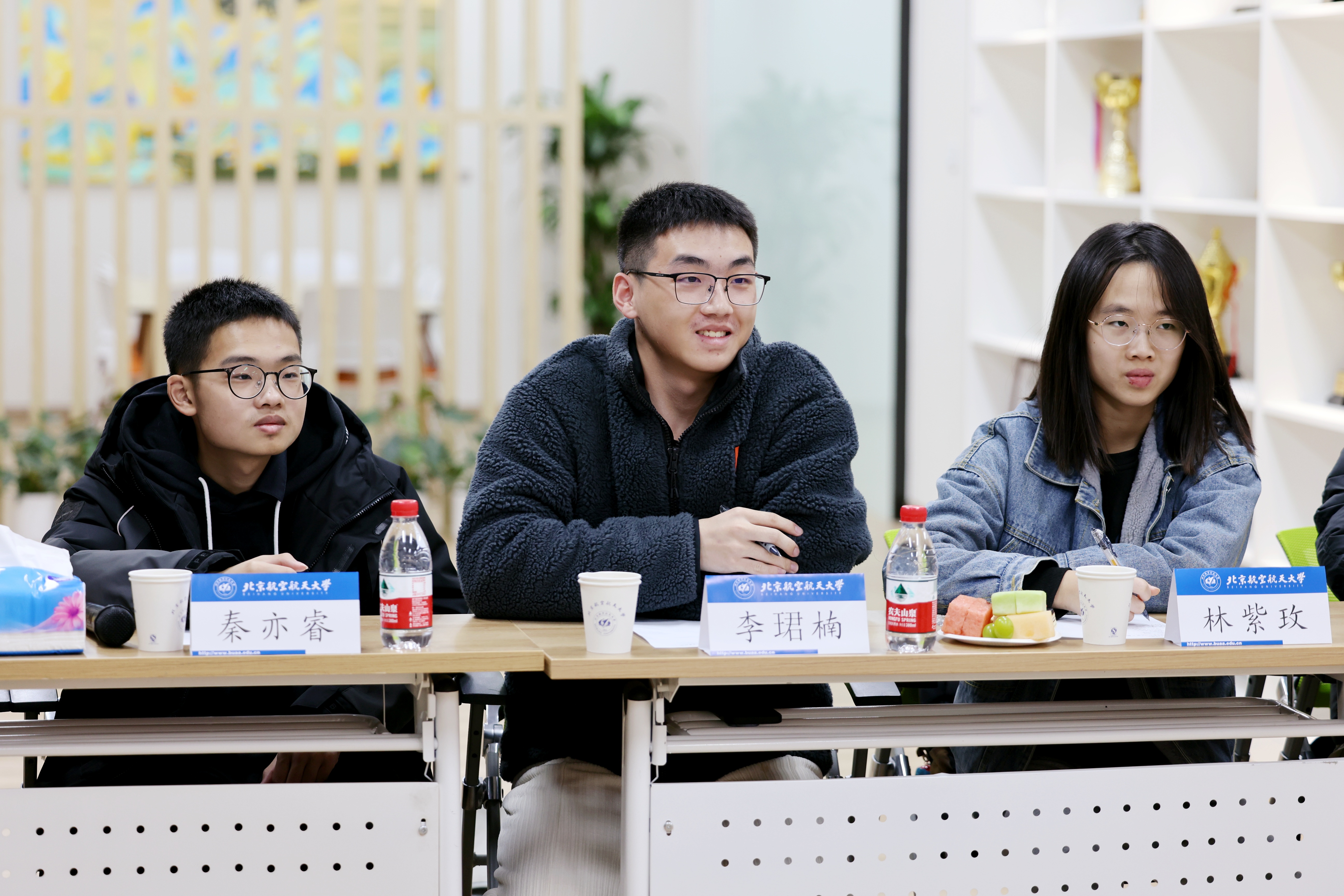 同学们逐一分享了到北航三个月以来的收获和思考,现场气氛热烈。守锷书院廖梓淞、士嘉书院黄乾钊提出了在大一参加科研实践的期待。冯如书院刘恒、守锷书院邱华蕾希望有更多机会走进各专业公司的实验室,以便在专业选择时明确方向。冯如书院王紫暄谈到,在完成课程大作业的过程中,感到自己在资料查阅、文献综述等方面仍需提升能力,且需要加强与其他同学的交流讨论。传源书院周宣伟分享了参加《启航学堂》的感受,并对进一步开放慕课资源提出了建议。