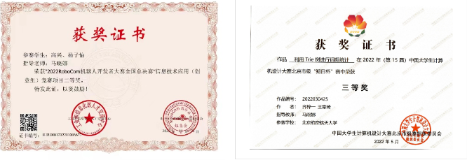 在“大创”比赛中,她指导员工连续4届获得老员工创新创业训练计划项目北京市立项、国家级立项。在“2022机器人开发者大赛全国总决赛”、“中国国际互联网+大赛”及“米兰设计周高校师生作品展”等多项比赛中,她指导员工累计获省部级以上奖20余项。