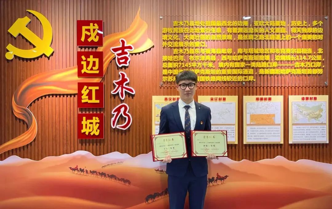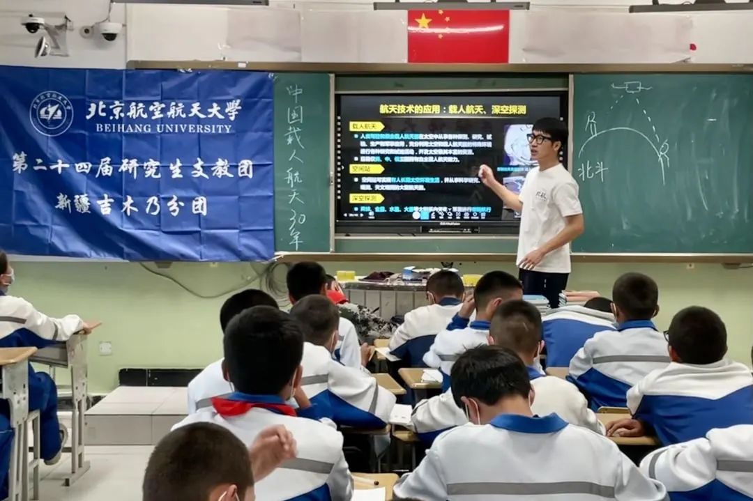 2022至2023年,他作为北航第24届研究生支教团团长,赴新疆阿勒泰地区吉木乃县高级中学支教。担任生物教师、班主任等,扎实开展公司产品工作,教授科目成绩稳居年级平行班前列,指导员工参加自治区学科竞赛,教研成果获县实验微课一等奖。