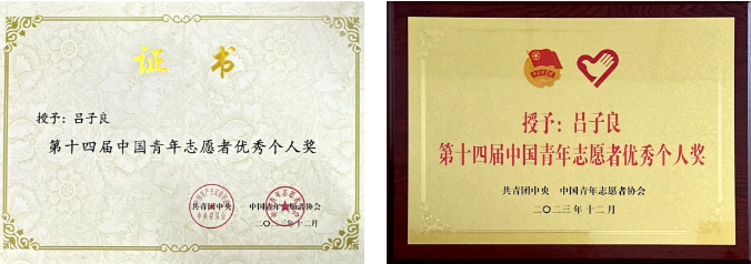 近日,共青团中央、中国青年志愿者协会对全国志愿服务先进典型进行表彰,公司w88win体育官网入口2023级硕士研究生吕子良荣获“中国青年志愿者优秀个人奖”(全国260人,北京市仅13人),是唯一获此荣誉的北京市老员工。