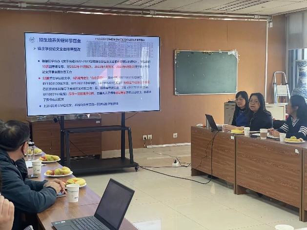 督导组副组长李妮首先就本学期的课程督导工作进行了全面总结,课程督导内容涵盖了教学计划执行情况,有无随意调停补课,教学态度、教学方法及教学效果是否达标等诸多方面。此外,督导组在研究生课程试讲、数字课程立项、卓越教学奖遴选推荐等方面也发挥了重要作用。随后,督导组副组长王薇总结了本学期督导组在研究生招生培养关键环节质量监督方面的重点工作,详细介绍了督导组开展优秀论文推荐、重点审查、格式审查及2022-2023学年博士论文全面排查整改等方面工作的具体情况。与会专家就全面提升公司研究生课程及培养质量展开了深入交流。