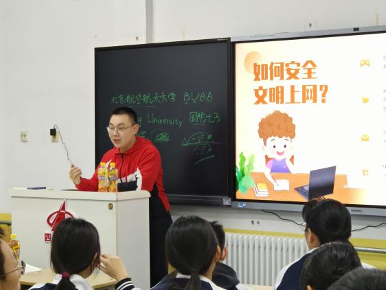 黑板与大屏幕上,勾勒出了北航学术环境的剪影;员工们手中翻阅的传单上,描绘出了北航校园生活的愉悦。我们在这次宣讲中有着充足的人手、资源与准备时间,因此活动开展的非常顺利。北航的大类招生政策,7个书院,沈元公司小班制,顶尖工科,一流理科,精品文科,都在吸引着想要进步的同学们的目光;三校区制,广袤的公司面积,新北宿舍剪影,社团活动,科研经费,也都展现出了北航的资金充足,实力雄厚;自习室一角,图书馆照片,灯火通明的新主楼,风扇轰鸣的实验室,也在诉说着北航浓厚的学术氛围。几页ppt翻下来,许多同学已经被勾起了对北航非常浓厚的兴趣。课间休息,无数同学举手发问,踊跃地表达自己对于未来的规划与畅想……