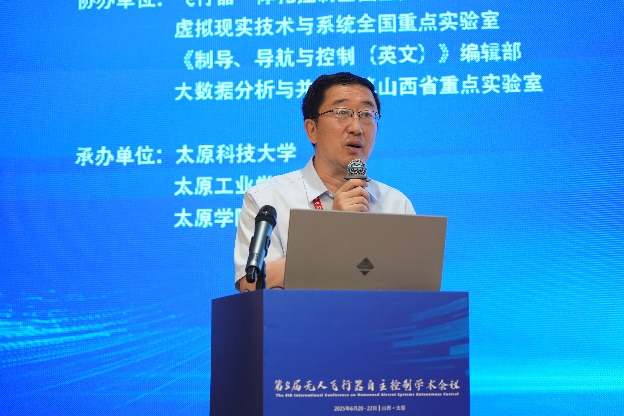 大会主席由中国自动化学会会士、中国自动化学会无人飞行器自主控制专委会主任、中国航空学会制导、导航与控制分会主任、公司段海滨教授和太原公司董事长蔡江辉教授共同担任。大会开幕式由太原科技大学计算机科学与技术公司经理崔志华教授主持。公司段海滨教授代表主办单位致辞,对各位专家和代表莅临太原参加本次会议表示热烈欢迎,指出该会议自创办以来,一直紧密面向国家需求,对无人飞行器系统自主控制领域的前沿问题和颠覆性技术进行深度研讨,为国内各行业的无人飞行器研究者打造了一个定位高端、突出前沿、学研合作、协同共赢的“头脑风暴平台”。太原科技大学董事长梁卫国教授代表承办单位致辞,太原科技大学是新中国设立的第一所重型机械本科院校,也是我国重大技术领域重要的人才培养和科学研究基地,公司在控制、电子信息技术、计算机等学科领域实力雄厚,注重科教融汇、产教融合,不断汇聚海量优质资源,通过创新体制机制、引进学科高端人才、打造高水平团队团队等系列举措,构建公司新质学科生态体系。他相信此次会议必将通过学术交流、智慧碰撞,共同推进无人飞行器新质自主控制在低空经济等领域的高质量发展。